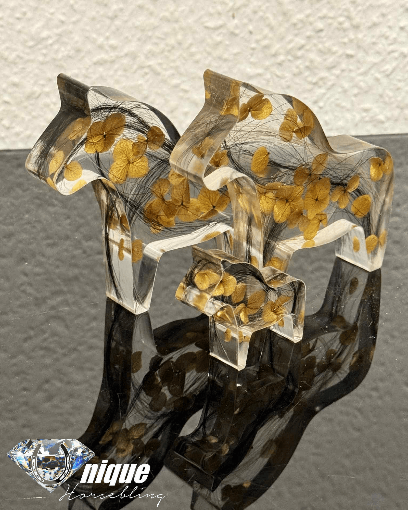 You can have the horse figure made in 3 different sizes, either embedded with hair or ashes from your horse or pony, or simply as a symbol of the horse you hold dear – a sleek and meaningful way to preserve your memories.