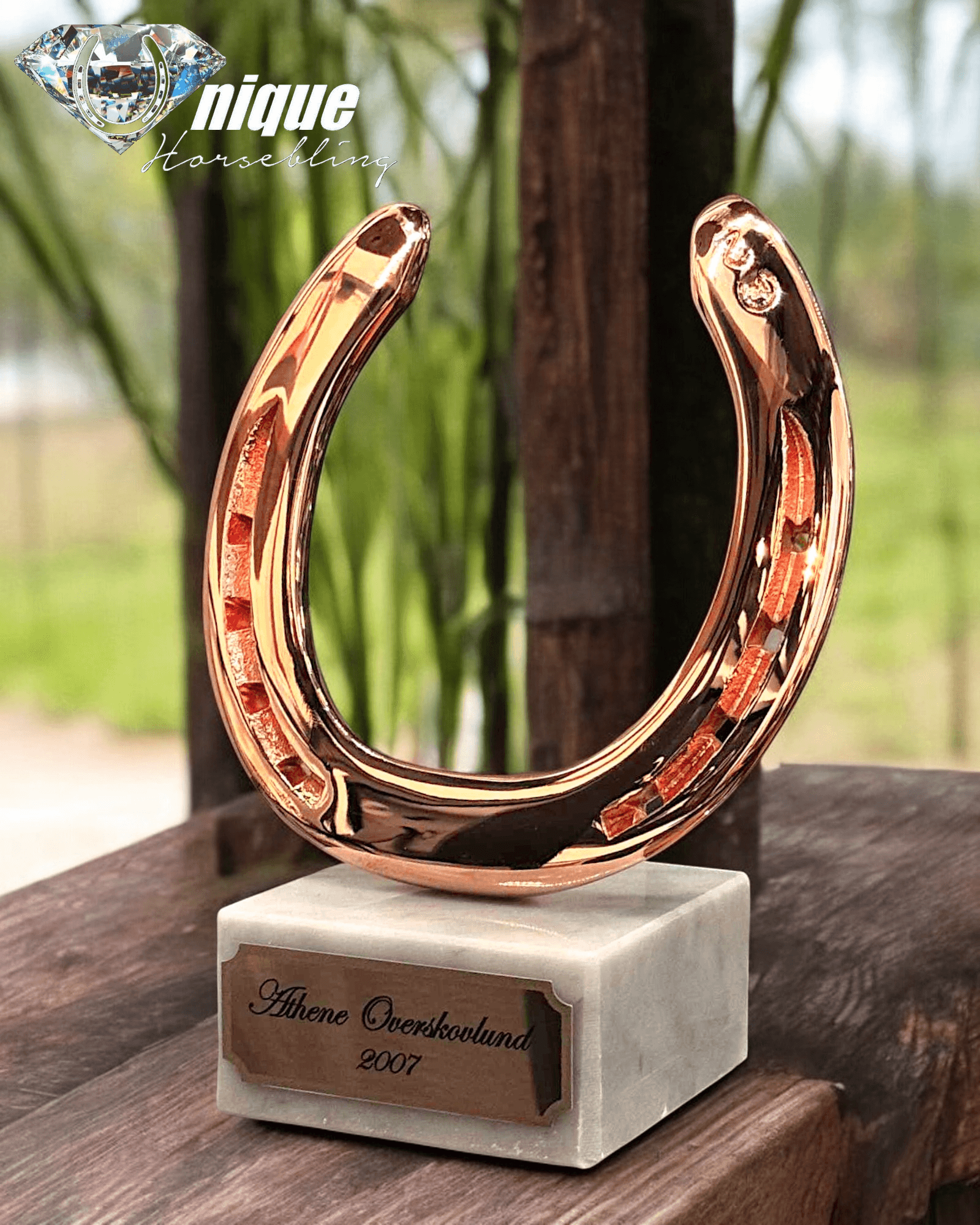 The copper plated horseshoe is fitted on a beautiful solid marble base.