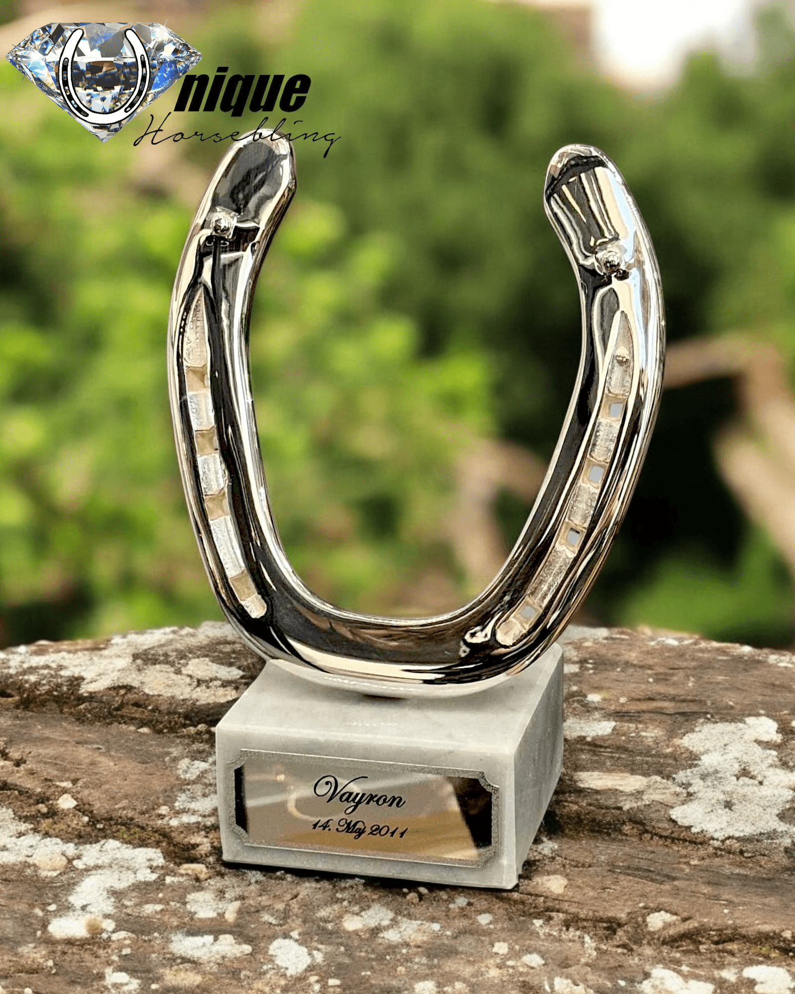 The silver plated horseshoe is fitted on a beautiful solid marble base.