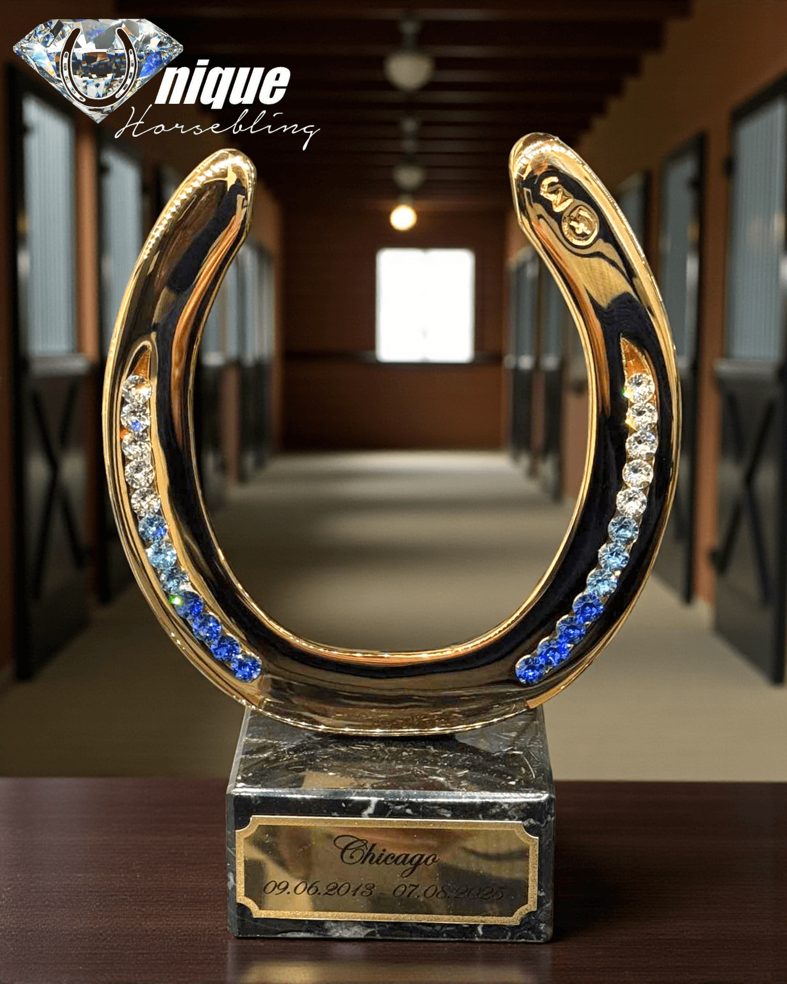 A truly captivating and refined memorial horseshoe that shines as brightly as the sun.