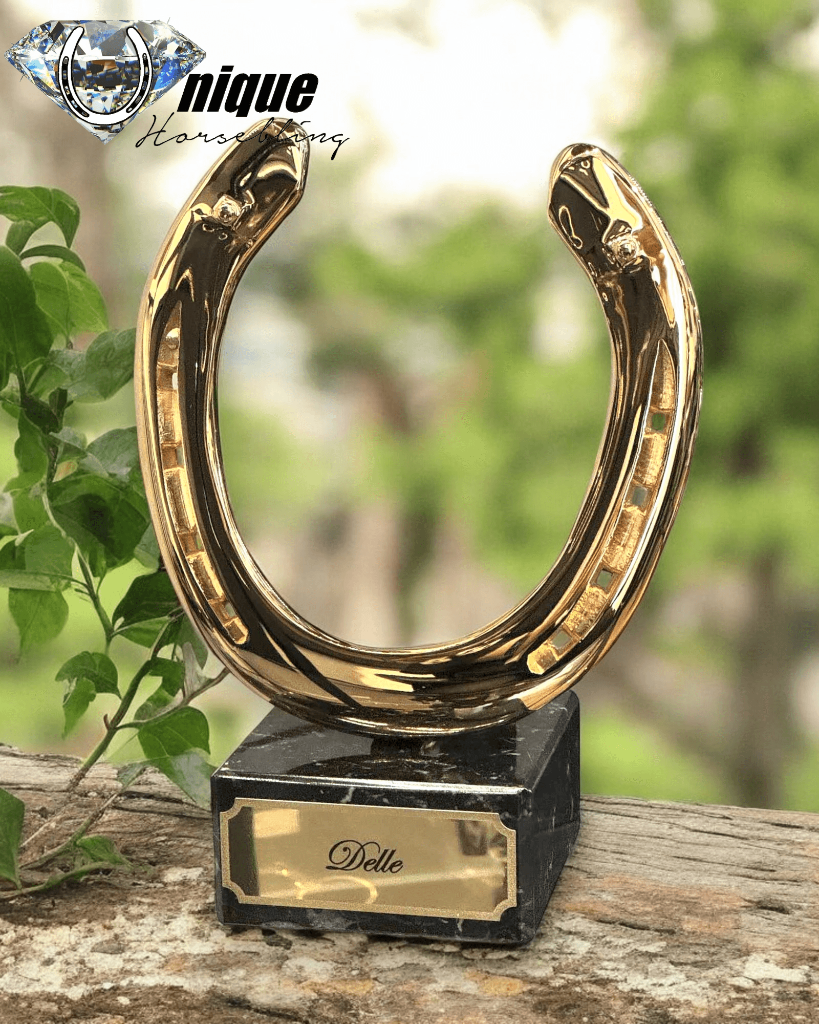 The 24 carat gold plated horseshoe is fitted on a beautiful solid marble base.
