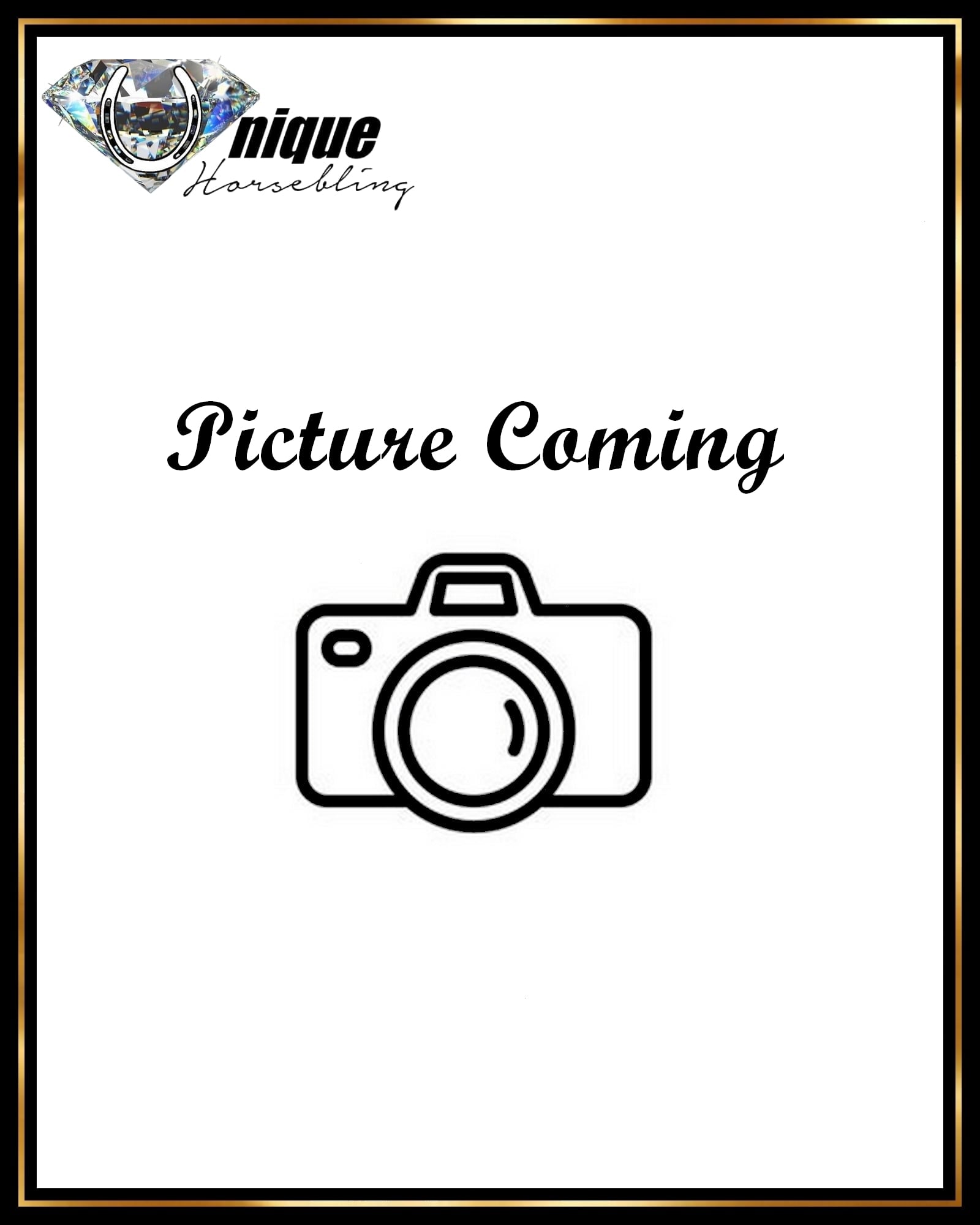Mirror - polished horseshoe, industrially plated with genuine silver, decorated with large rhinestones in the nail grooves, fitted on a metal base with engraved sign.
