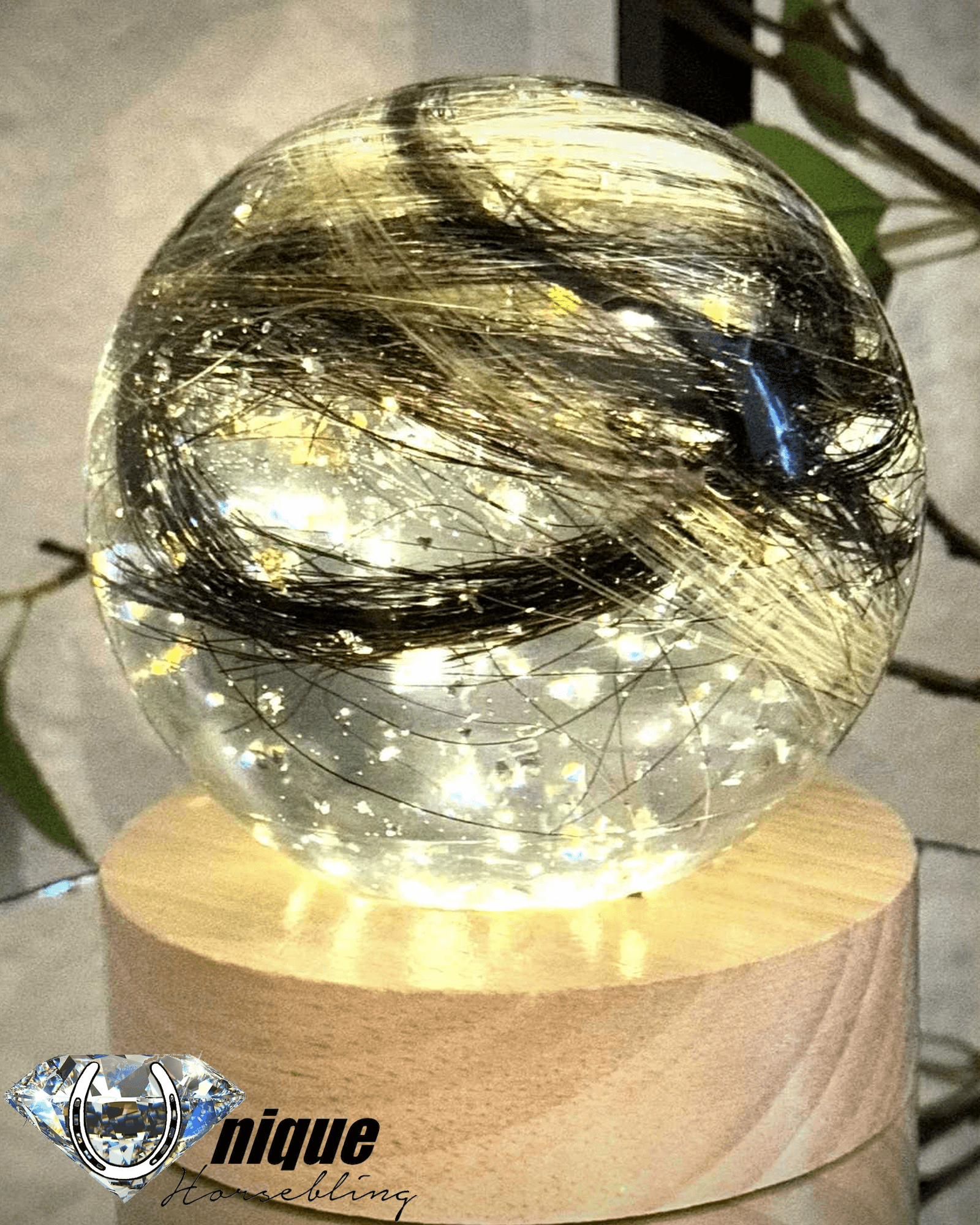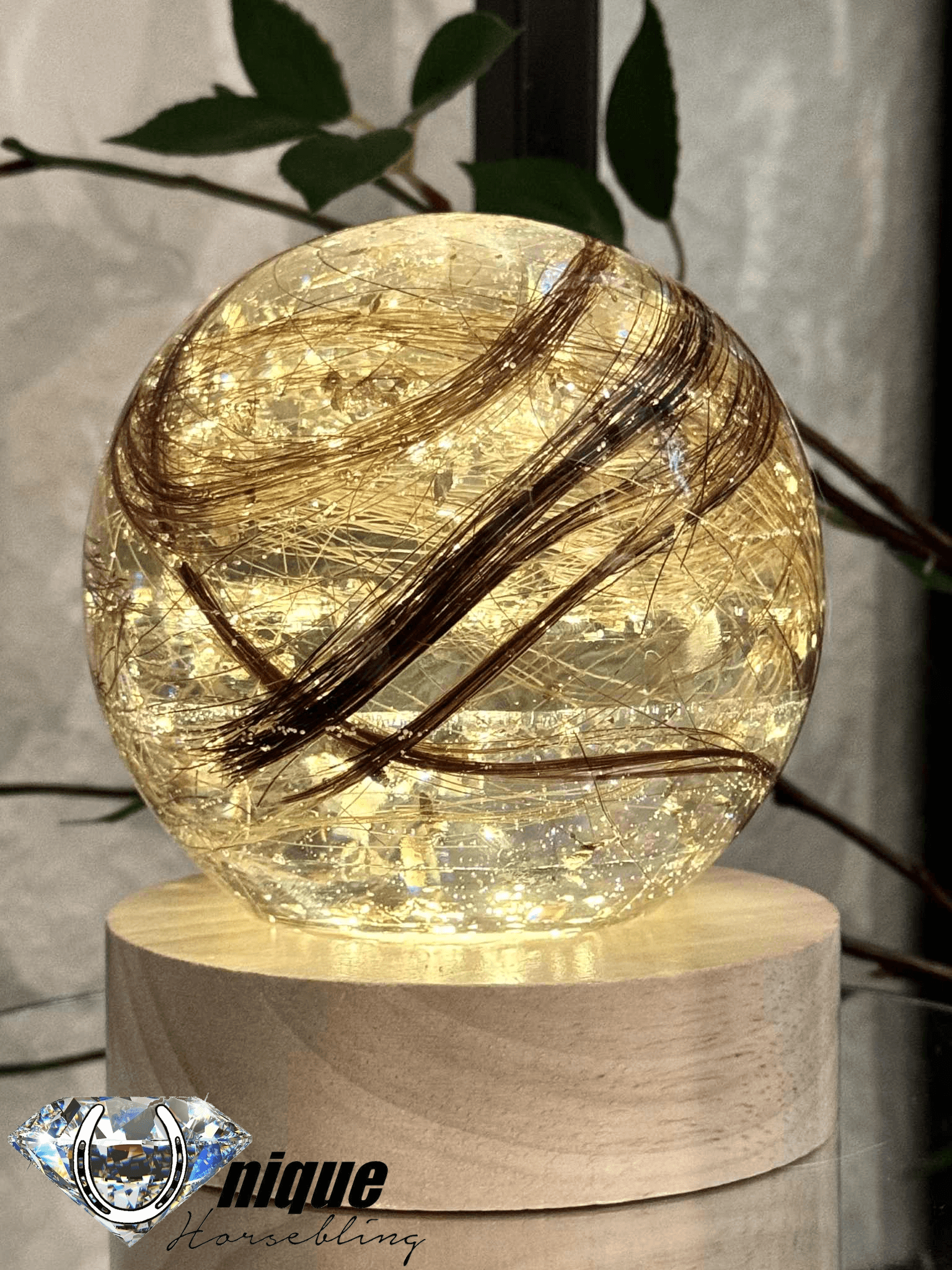 Embedded with hair or ashes from your dog, cat, horse – or another beloved pet – this large sphere becomes a beautiful decoration in your home and a symbol of your special bond.