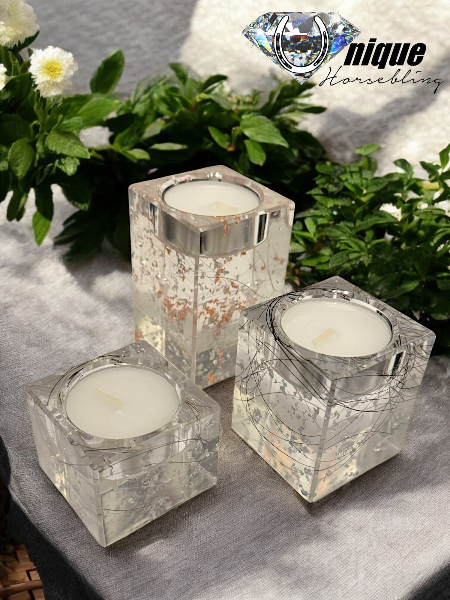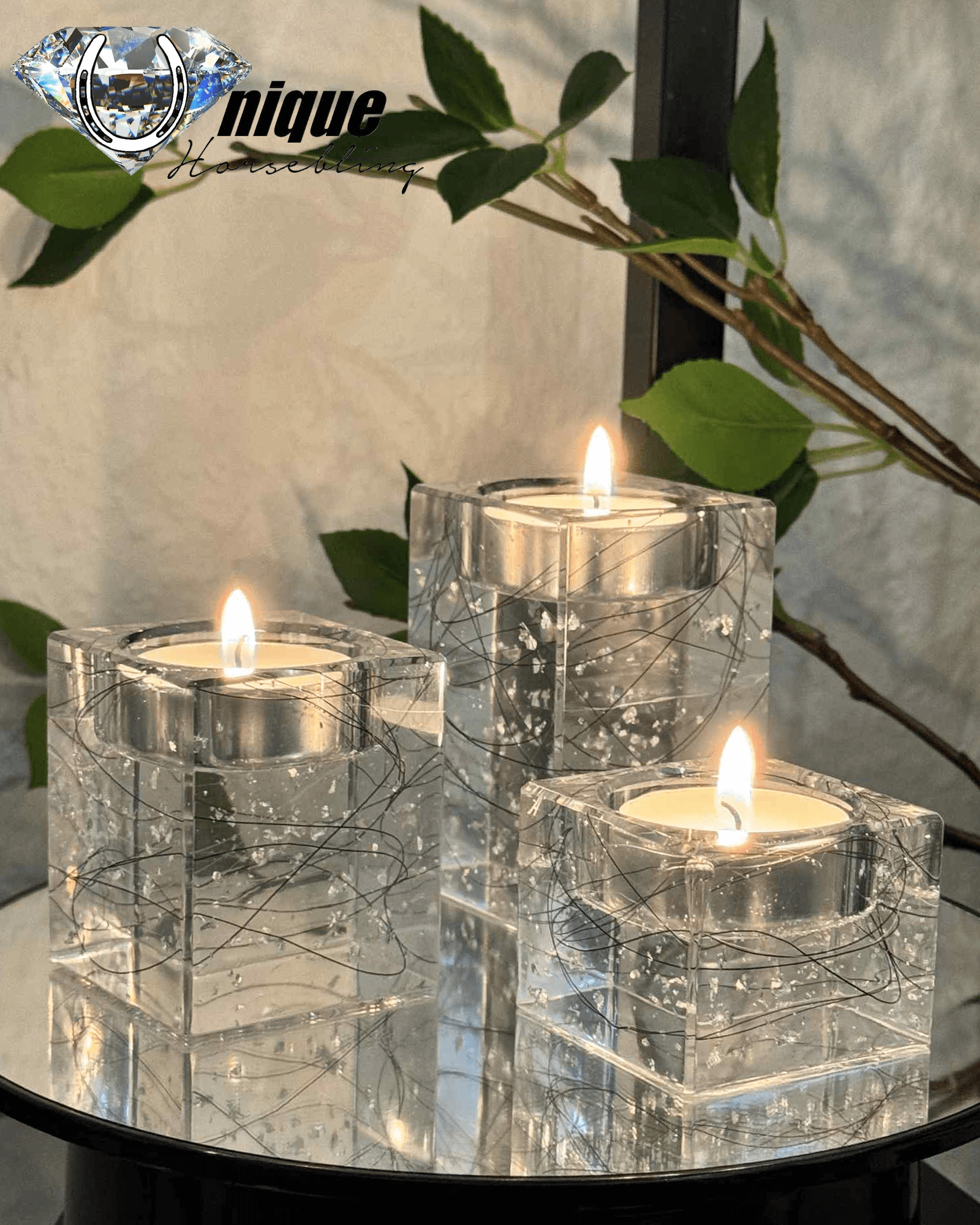 A square tealight holder set designed to preserve a meaningful part of your beloved pet – with the option to encapsulate hair, ashes, or teeth in each candle holder.
